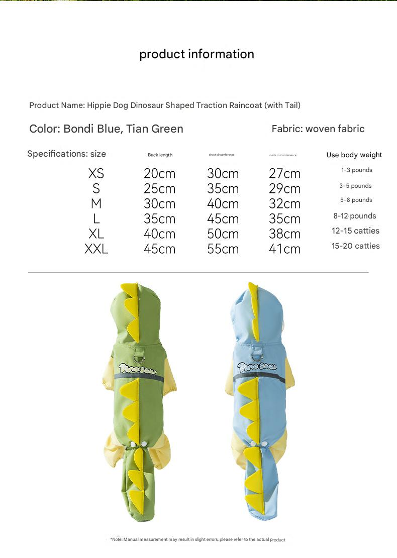 3D dinosaur tail pet raincoat